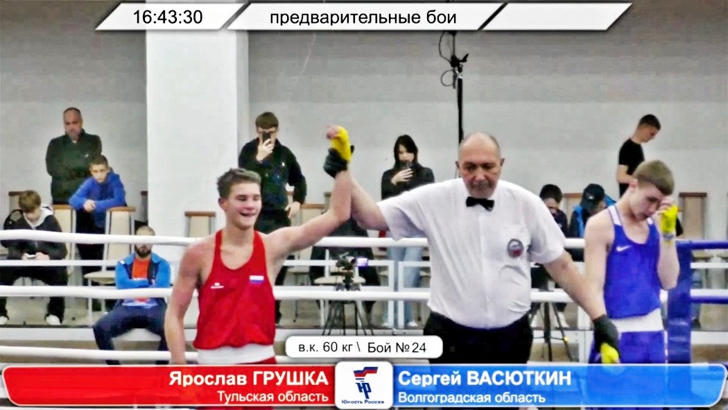В среду, 8 октября, в четвертьфинальном поединке в весовой категории до 60 килограммов Ярослав Грушка победил Сергея Васюткина, представляющего Волгоградскую область.
