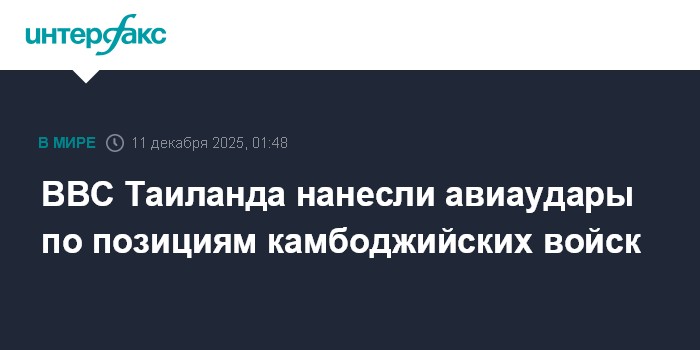 Москва. 11 декабря. INTERFAX.RU - Королевские ВВС Таиланда нанесли авиационные удары по позициям военных Камбоджи в приграничных районах в ответ на артиллерийские обстрелы, сообщает в четверг таиландское министерство обороны.