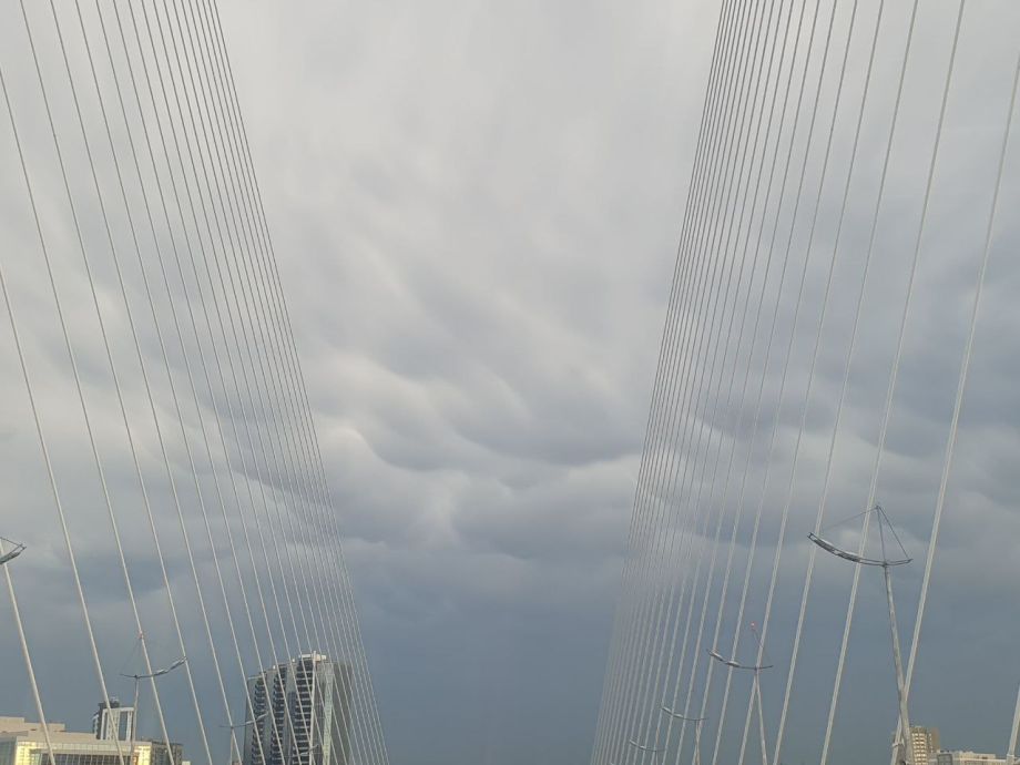 Вымеобразные облака украсили небо над Золотым мостом во Владивостоке