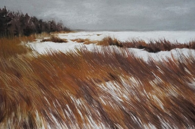 Палитра работ – мягкие, землистые, охристые и коричневые тона, высветленные белым цветом, – созвучна природе и её межсезонным состояниям.
