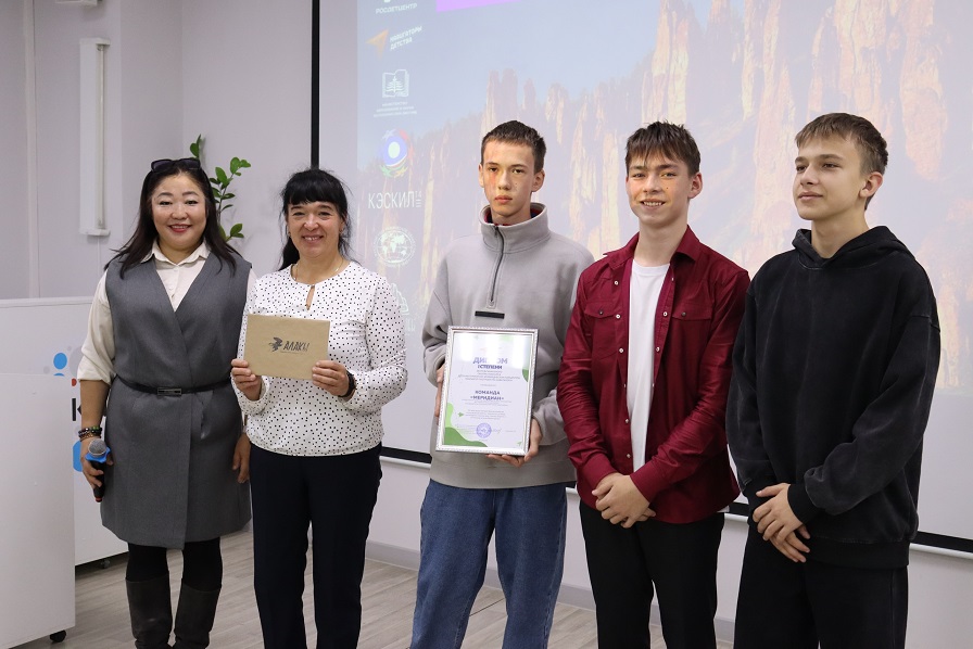 - Первое место заняла команда Центра развития творчества детей и юношества Нерюнгринского района «Меридиан» под руководством Виктории Проценко.