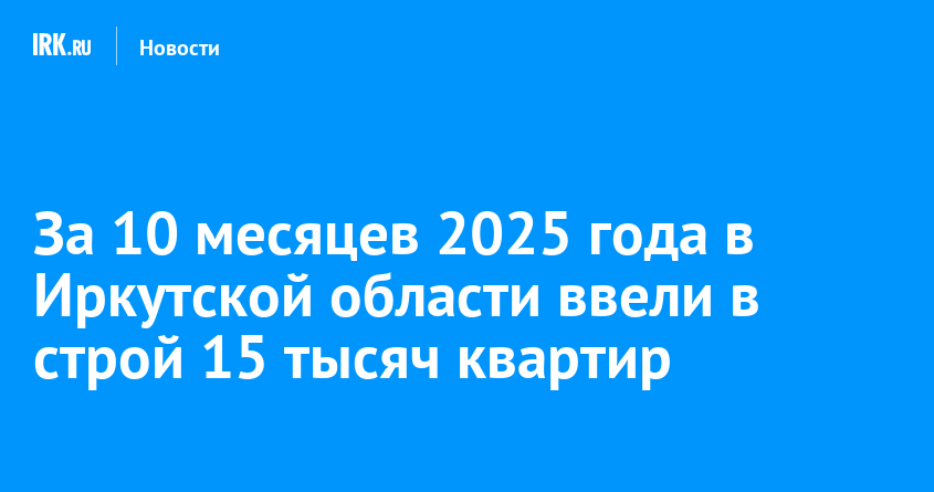 За 10 месяцев 2025 года в Иркутской области ввели в строй 15 тысяч квартир