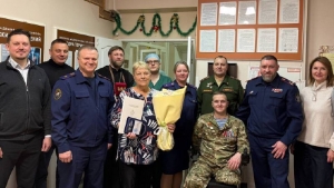 По поручению Председателя СК России Александра Ивановича Бастрыкина заместитель руководителя ГСУ СК России по городу Санкт-Петербургу вручил Дмитрию Киселеву медаль «Доблесть и отвага», пожелав стойкости и силы духа, а также скорейшего восстановления.