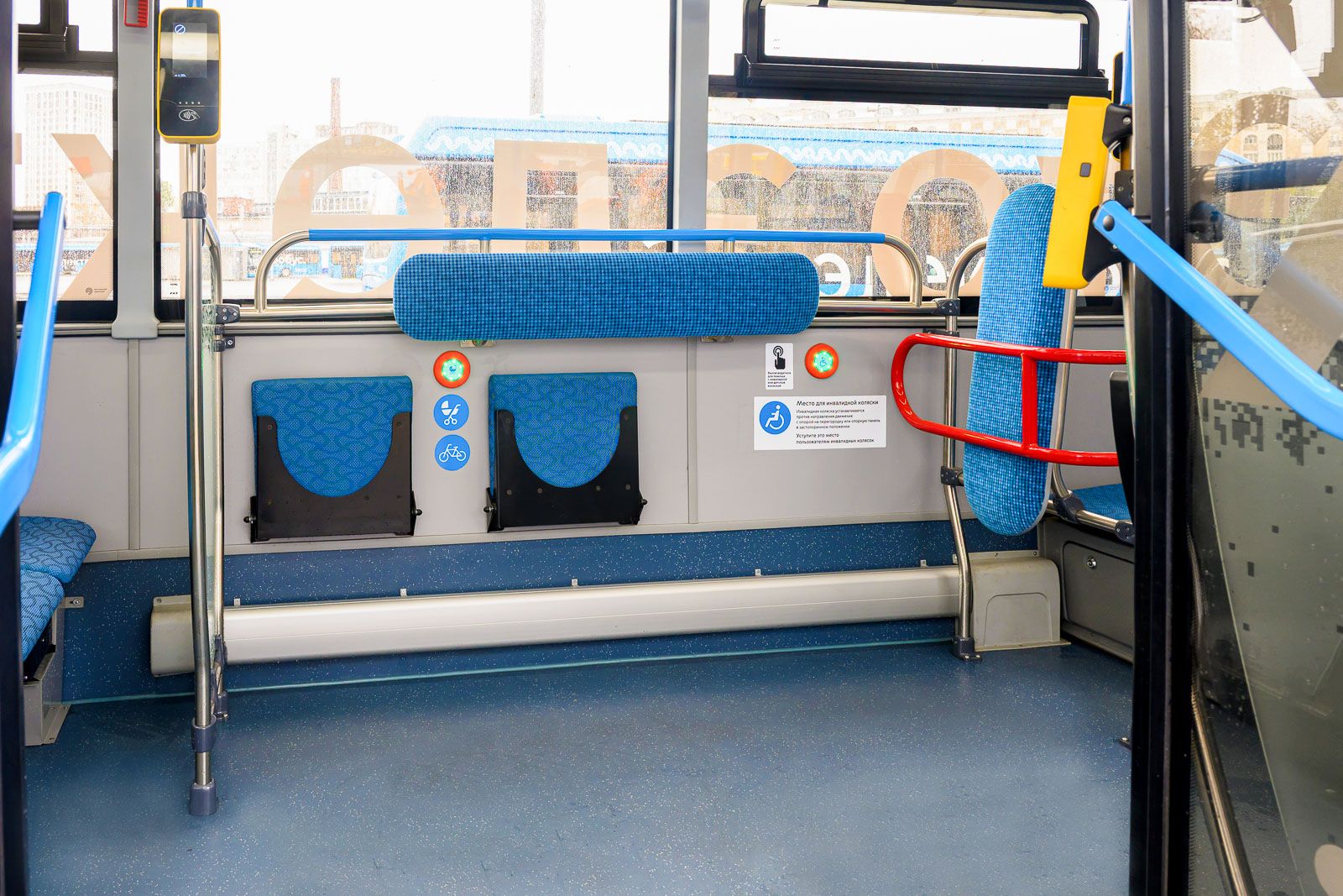 Все электробусы соответствуют стандартам безопасности и уровня сервиса. Для комфорта пассажиров в них есть USB-слоты для зарядки телефонов, медиаэкраны с информацией о ближайших остановках, система климат-контроля, откидная аппарель, кнопки вызова водителя и специальные места для маломобильных пассажиров, а также цифровые валидаторы возле дверей для удобной оплаты проезда.