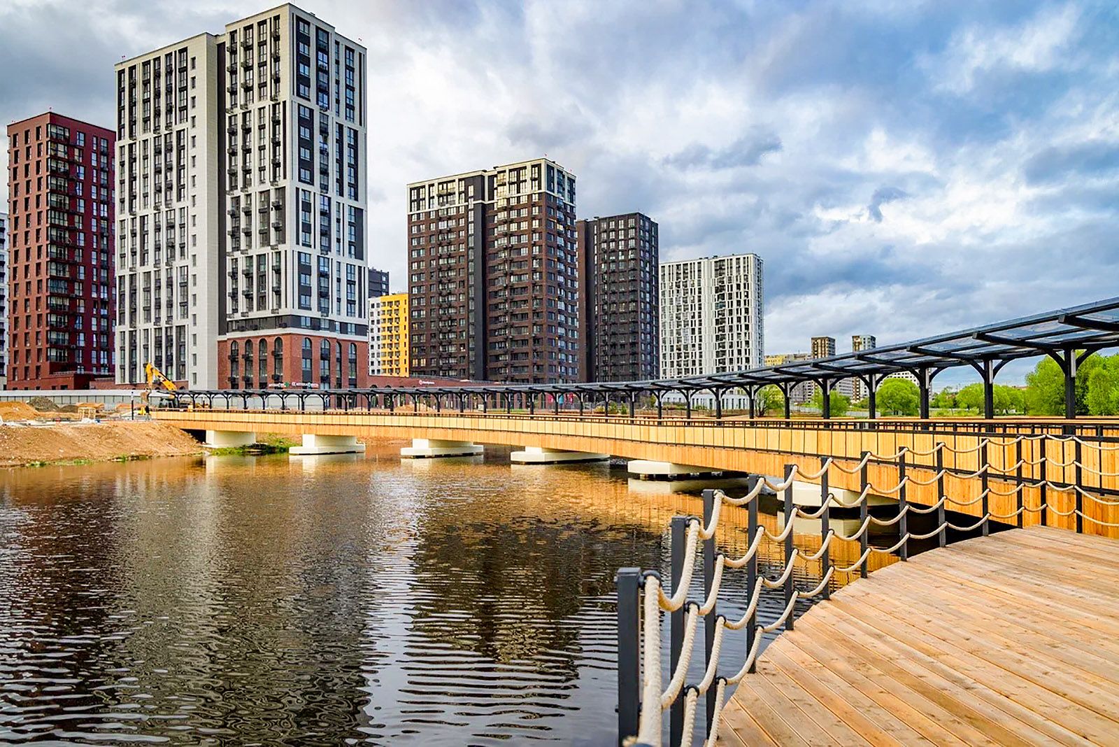 В строящемся жилом квартале «Прокшино» в Коммунарке подходит к концу строительство крытого пешеходного моста через пруд Дальний. Об этом сообщил Министр Правительства Москвы, руководитель столичного Департамента градостроительной политики Владислав Овчинский.