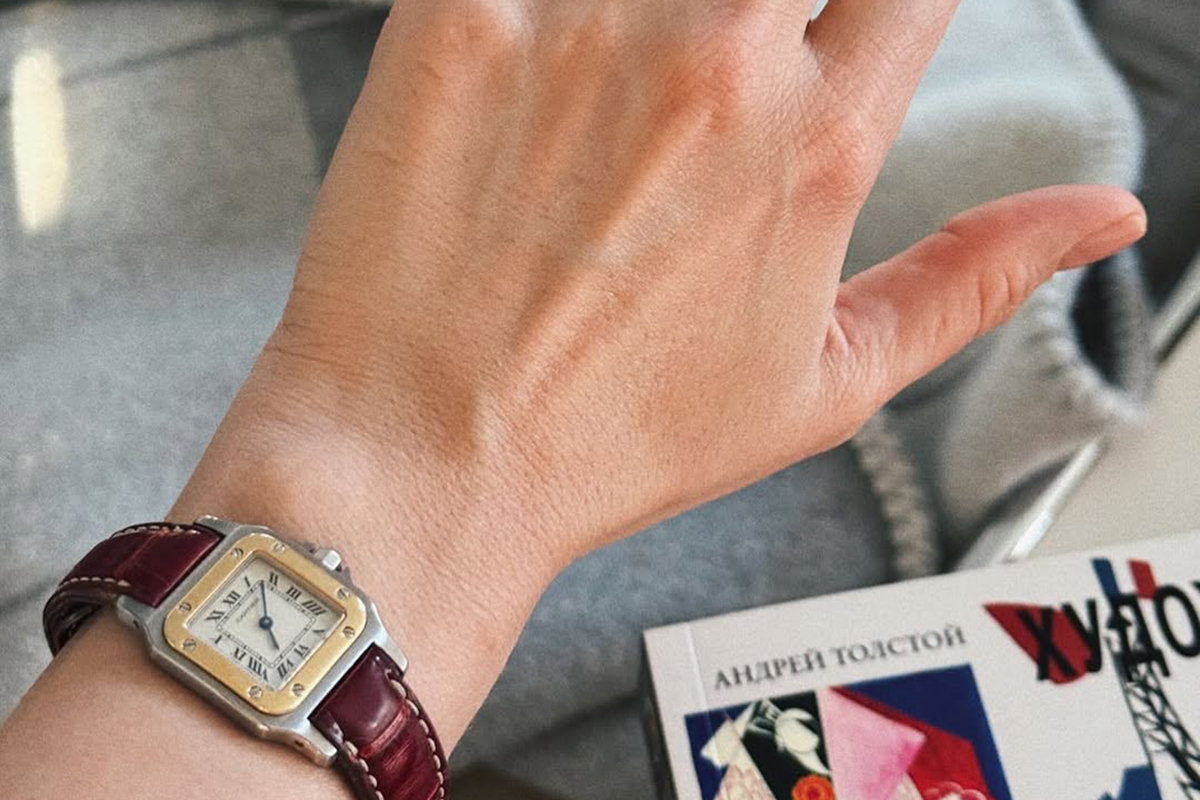 «В 1904 году Луи Картье исполняет желание знаменитого бразильского авиатора Альберто Сантоса–Дюмона: иметь возможность определять время за штурвалом самолета. Именно так были созданы одни из первых наручных часов, увековечившие дружбу двух легендарных первопроходцев. Циферблат с закругленными углами, плавные изгибы креплений ремешка и декоративные винты. Культовые часы в дальнейшем перерождаются в многочисленных интерпретациях», — рассказала в своем блоге Елена.
