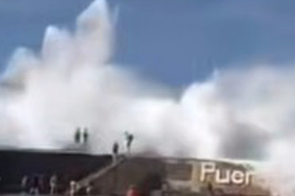 На кадрах запечатлено, как мощная волна обрушивается на двухуровневый пирс, где находились люди. Волна целиком накрывает конструкцию. Заметно, как несколько человек теряют равновесие и падают с верхнего уровня на нижний, а один из отдыхающих оказывается в воде. После этого запись прерывается.