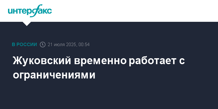 Москва. 21 июля. INTERFAX.RU - Аэропорт Жуковский временно не принимает и не выпускаем самолеты, сообщили в Росавиации.