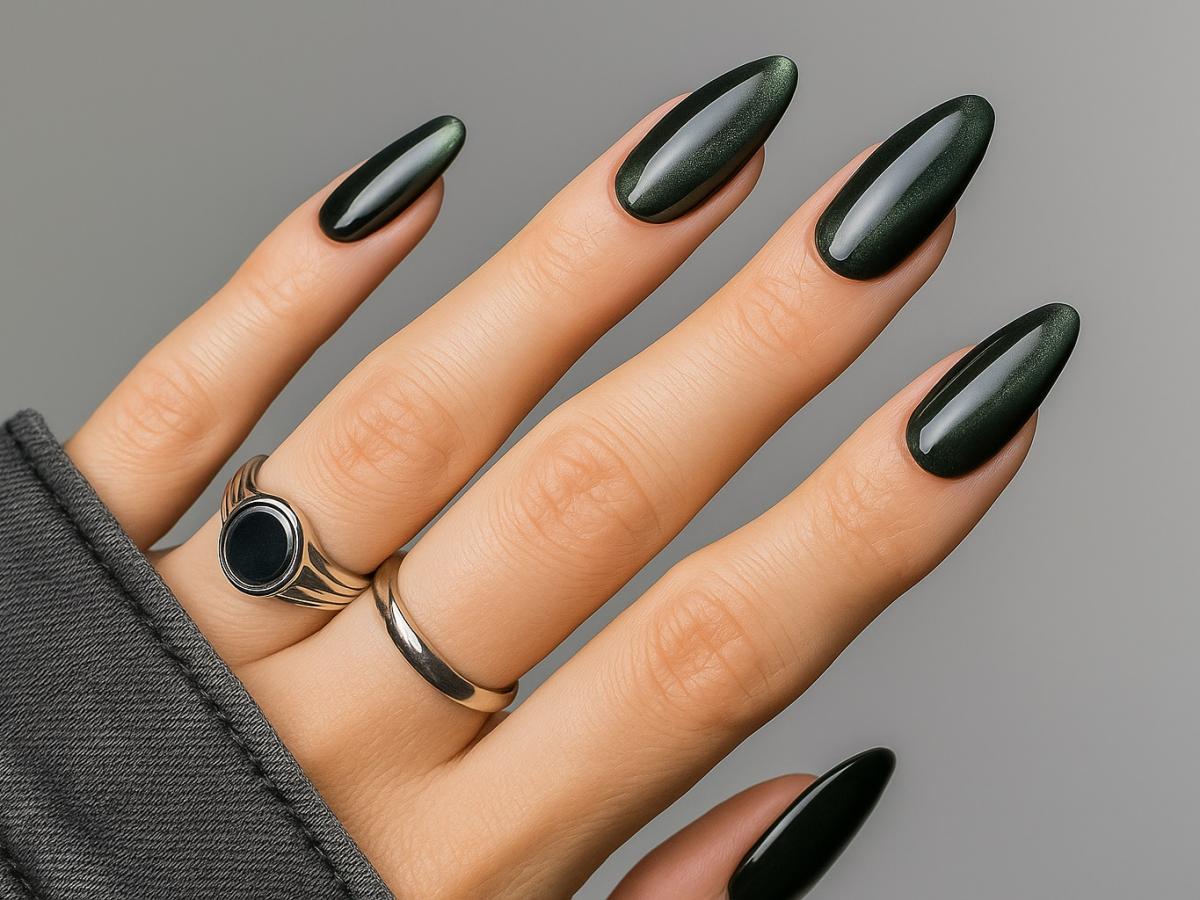 Фото: Generated by AI (DALL·E 3 by OpenAI) is licensed under Free for commercial use (OpenAI License) Маникюр с темно-зеленым металлическим покрытием Новая эстетика зимнего нейл-артаСовременный зимний маникюр — не про один вечер у ёлки, а про три месяца комфорта и выразительности. В моде — естественные оттенки, мягкие текстуры и акцент на глубине цвета. Лак может быть шоколадным, как утренний латте, ледяным, как январское окно, или мерцать так, будто внутри него спрятан снегопад.