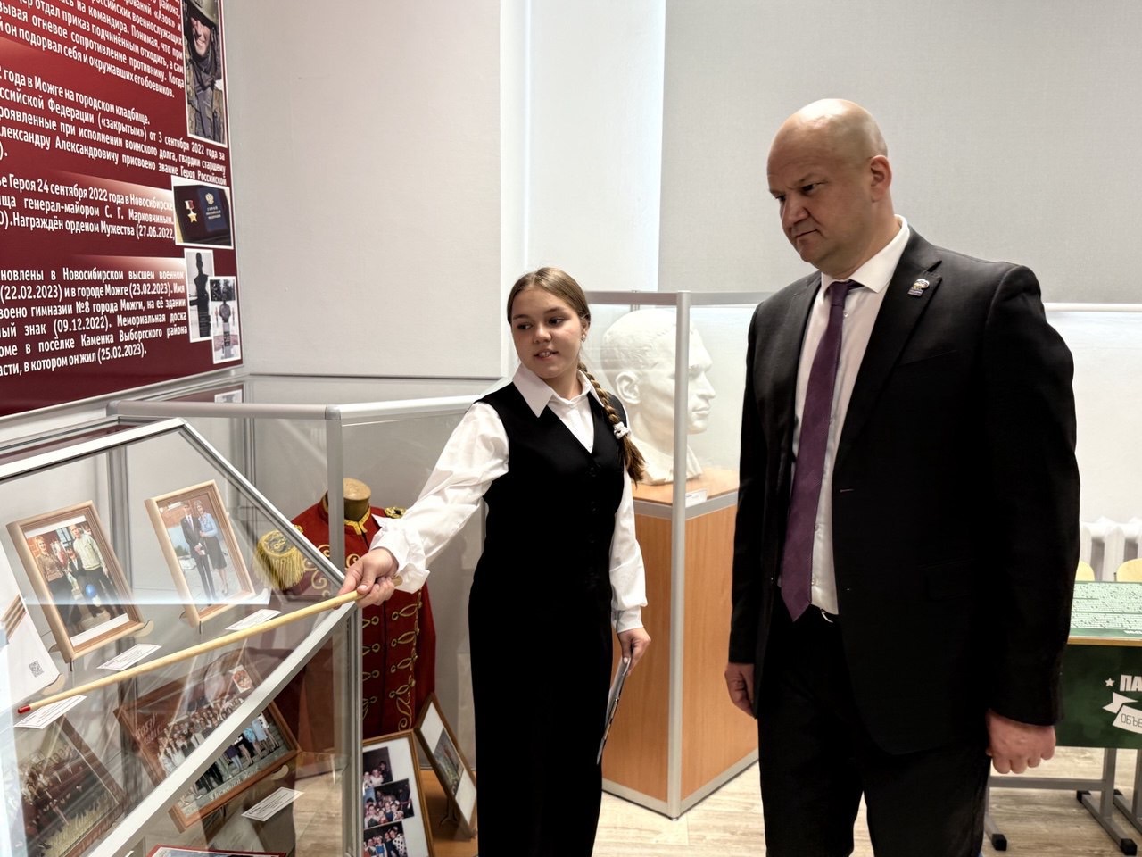Юные лекторы из числа учащихся гимназии провели интересную экскурсию по школьному музею, посвященному А. А. Ефимову. Звание Героя России он получил посмертно. Благодаря музейной экспозиции ученики и гости гимназии узнают о его подвиге.