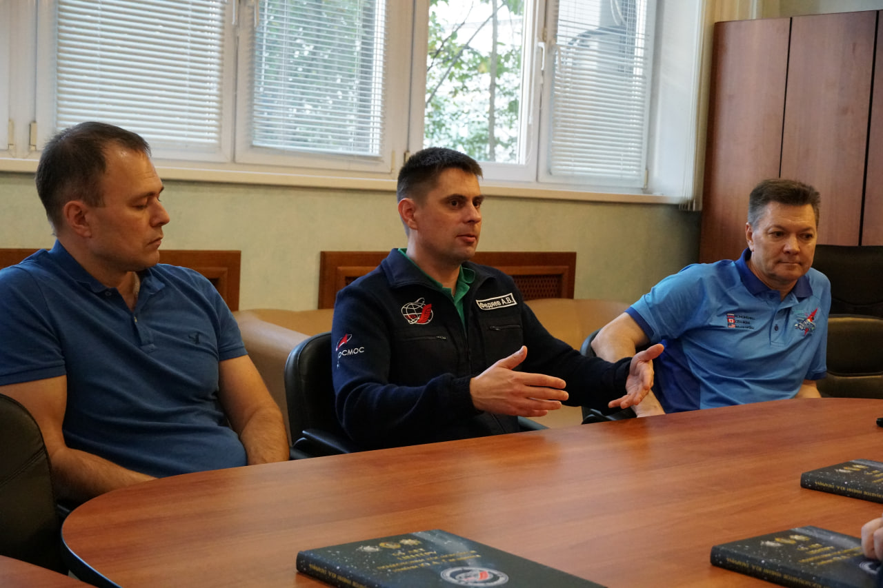 Это настоящий действующий комплекс, здесь космонавты тренируются перед «командировкой» на МКС. Участникам СВО показали уникальные тренажёры, которые используются в подготовке к полётам. А потом к нашим героям лично вышли командир отряда космонавтов и космонавты: пообщались и подарили книги с автографами.