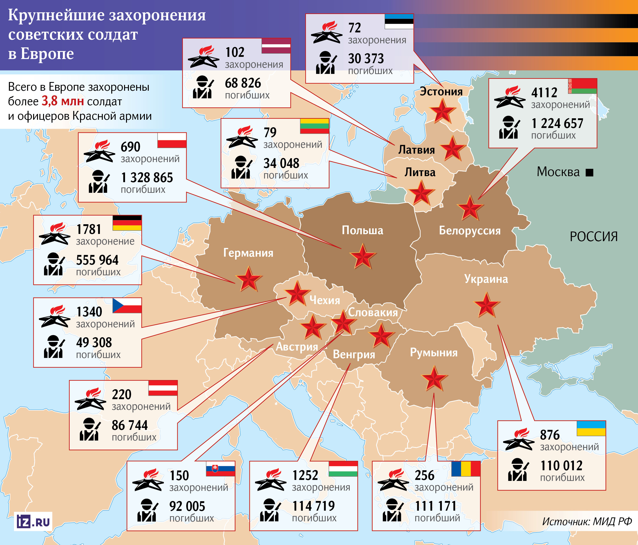 Не менее 300 случаев демонтажа памятников советским воинам в Европе зафиксировано только с 2022 года. Всего же с начала 1990 годов уничтожено более 3 500 мемориалов.