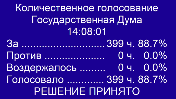 Законопроект о защите Государственного герба Российской Федерации единогласно принят в первом чтении. Прежде всего хочу поблагодарить председателя Госдумы Вячеслава Викторовича Володина за поддержку этой инициативы, а также 412 депутатов, которые стали соавторами законопроекта, и всех лидеров фракций.