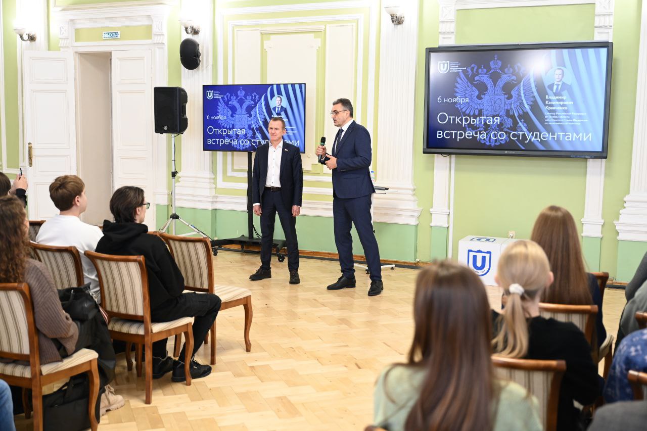 «Как привлечь в экономику области дополнительные инвестиции?»А один из студентов спросил даже о межбюджетных отношениях — и это прямо связано с развитием региона.