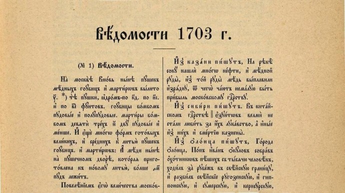 В 1703 году 13 января (или 2 января по старому стилю) в Москве вышла первая русская периодическая газета «Ведомости о военных и иных делах, достойных знания и памяти, случившихся в Московском государстве и во иных окрестных странах». Такое название возникло не сразу – первое время издание именовали то Курантами, то Российскими ведомостями, а то и вовсе печатали без заголовка. Издавать газету начали по указу Петра I. Сам царь принимал участие в подготовке ее номеров.