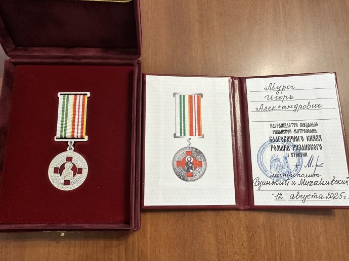 Награжден медалью Рязанской Митрополии Благоверного князя Романа Рязанского II степени. Этой высокой награды удостоен за труды во славу Святой Церкви. Вручение провел Митрополит Рязанский и Михайловский Марк и пожелал помощи Божией в ответственном служении на благо нашего региона и Отечества.