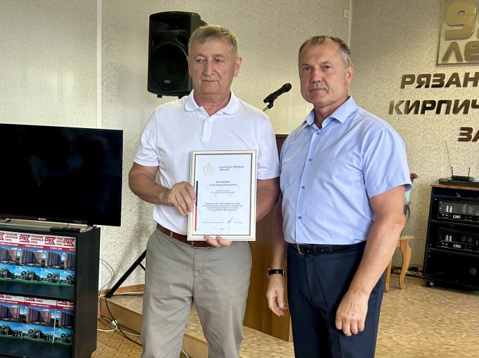 Накануне праздника принял участие в торжественном мероприятии на Рязанском кирпичном заводе. Поблагодарил коллектив за вклад в развитие отрасли, вручил благодарственное письмо главному инженеру Александру Косыреву и почетные знаки Губернатора Рязанской области «Благодарность от земли Рязанской» сотрудникам завода.