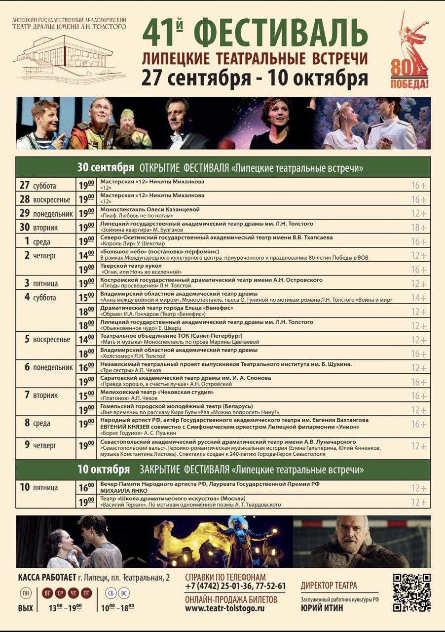 Впереди — две недели уникальных спектаклей, премьер и творческих встреч. Искусство, которое говорит с нами о вечном — о подвиге, памяти, классике, которая вне времени. Ощущаю невероятный творческий подъем и гордость за наш город, который принимает такой масштабный культурный диалог. Мы бережно храним великое наследие русского театра, и преумножаем его богатство на липецкой земле.