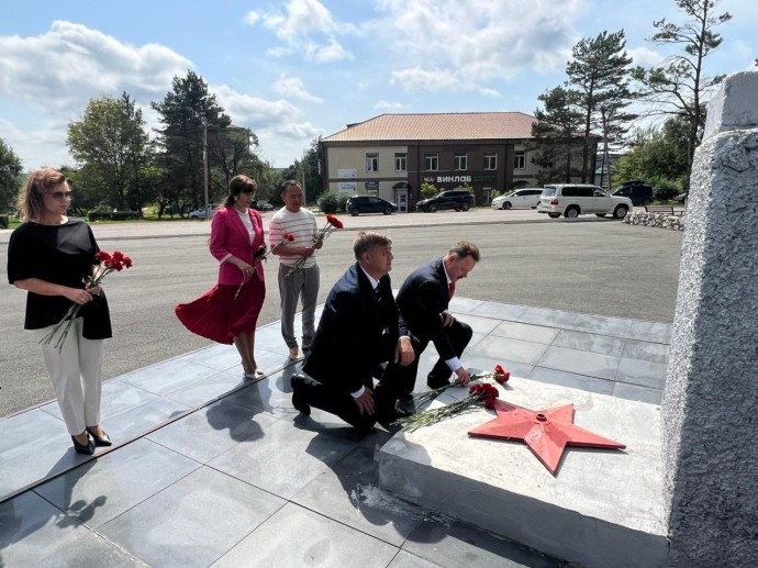 В память о павших в годы войны земляках возложили цветы к памятнику воинам на Площади Победы.