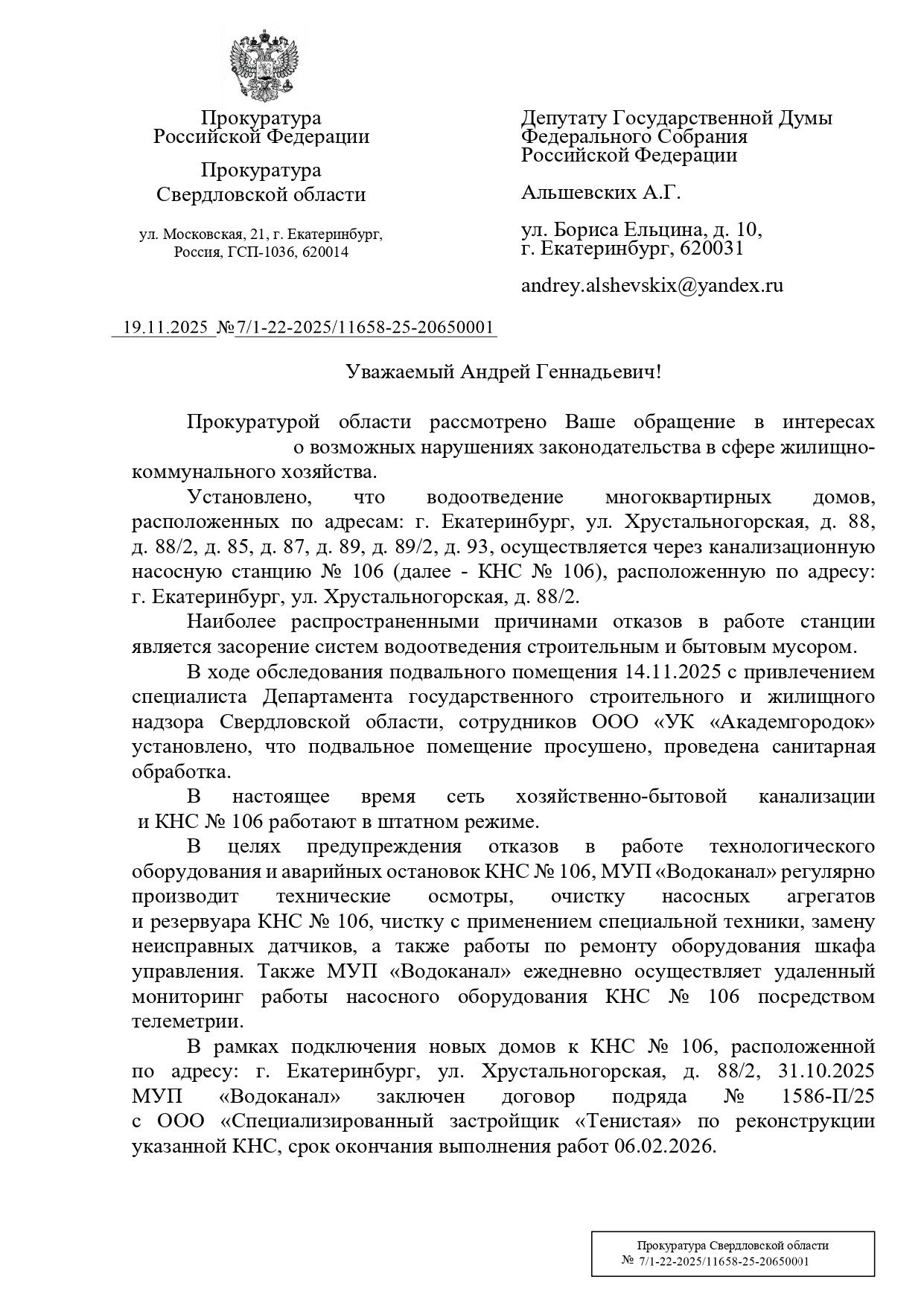 Депутат Государственной Думы РФ от Екатеринбурга, Верхней Пышмы и Среднеуральска