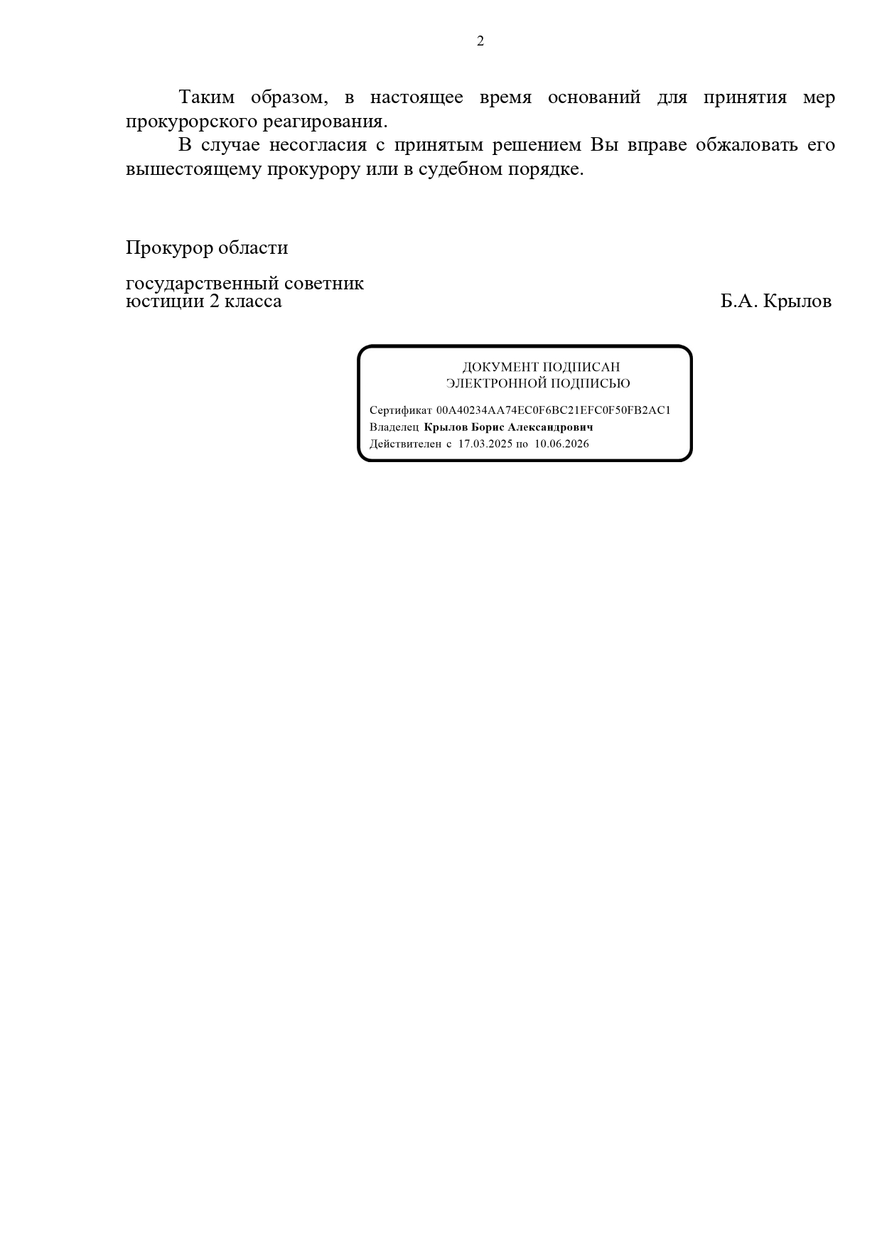 И ответ прокуратуры косвенно подтверждает этот довод.